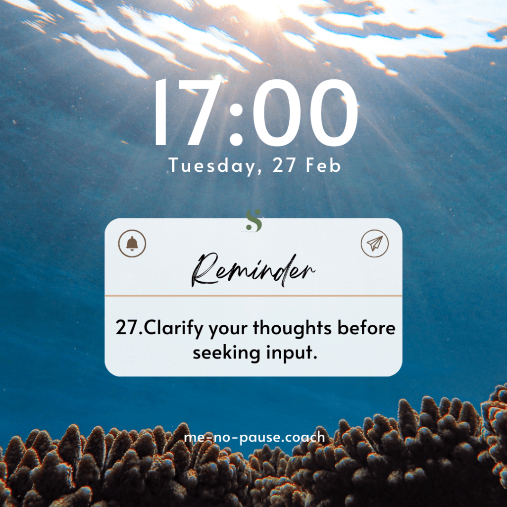 Before seeking opinions from others, it’s important to clarify your own thoughts. This is a crucial step because only when we understand our own stance and desires can we seek advice and opinions from others more effectively.